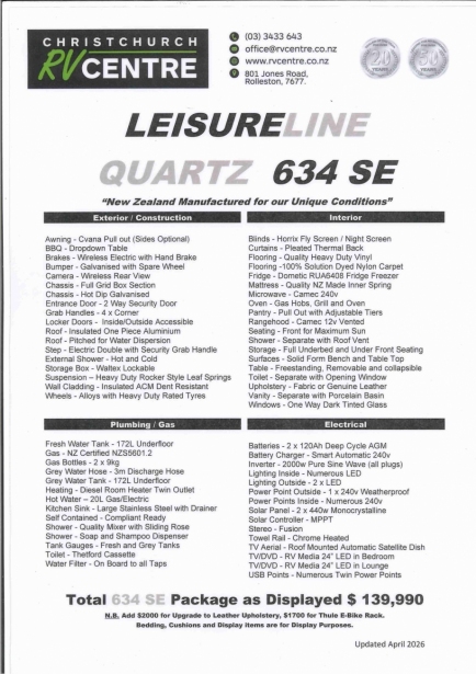 - All Leisureline caravans in stock have the SE 'South Island exclusive package'.