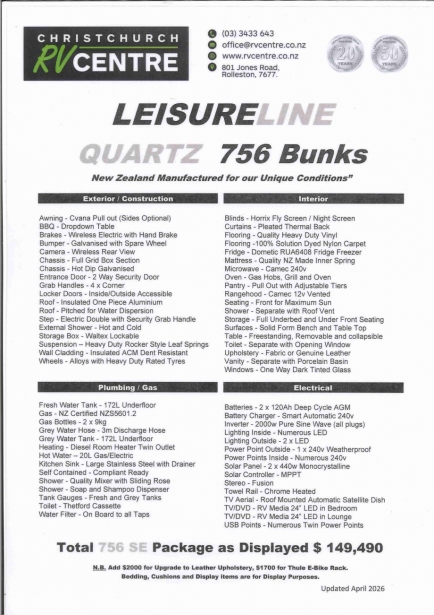 - Christchurch RV Centre is the only factory accredited Leisure Line Dealer in the South Island and the largest dealer in New Zealand.
