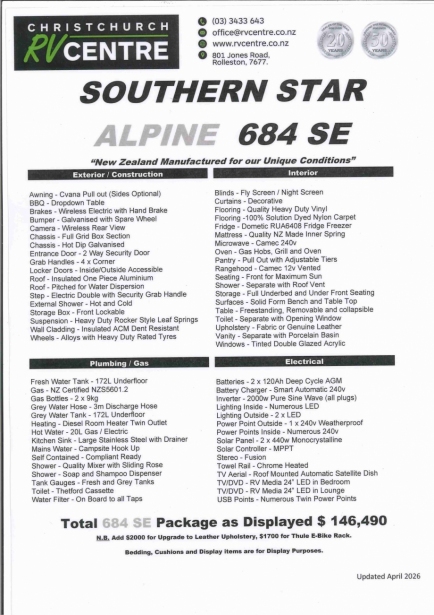- Christchurch RV Centre is the only factory accredited Southern Star Dealer in the South Island and the largest dealer in New Zealand.